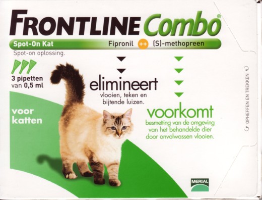 FRONTLINE COMBO® is de nieuwe telg in de FRONTLINE familie. Het is een combinatieproduct, dat naast fipronil, het actief bestanddeel van de reguliere FRONTLINE, ook (S)-methopreen bevat. FRONTLINE COMBO® biedt daarom een zeer complete bescherming van uw dier: het bestrijdt niet alleen volwassen vlooien en teken, maar is ook werkzaam dankzij de (S)-methopreen tegen de eieren en larven van vlooien. Zo kunnen er zich geen nieuwe vlooien ontwikkelen, en vermindert de besmettingsdruk in de leefomgeving van uw dier.