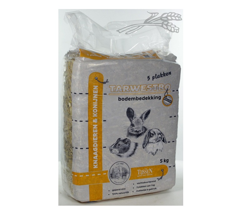 Tarwestro vormt een behaaglijke ondergrond waarin konijnen en knaagdieren zich comfortabel kunnen nestelen.Tarwestro is samengesteld uit 100% natuurzuiver stro van de beste kwaliteit.Tarwestro is verpakt in voorgesneden porties en daardoor handig in gebruik. Verschoon wekelijks de kooi. Bedek de bodem van de kooi met een voldoende dikke laag Tarwestro.