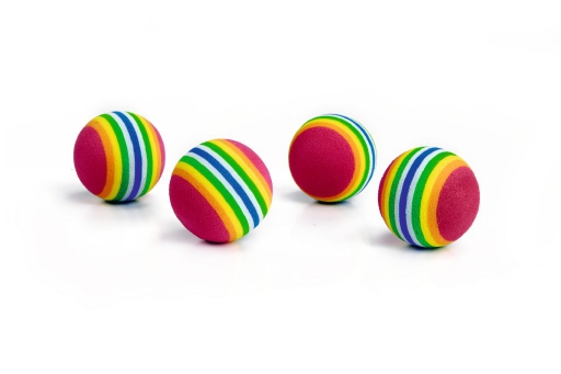 Regenboogballetjes waar uw kat leuk mee kan spelen.