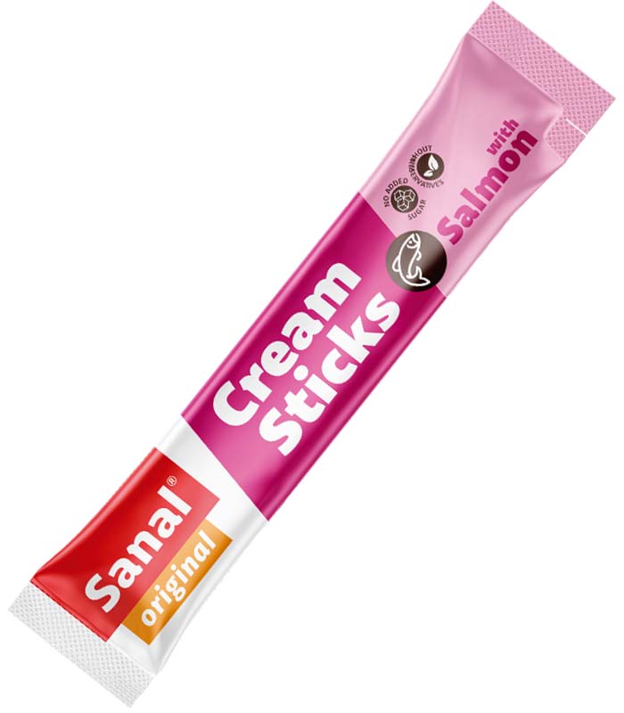 De Sanal Cream Sticks zijn  verkrijgbaar in de smaken zalm