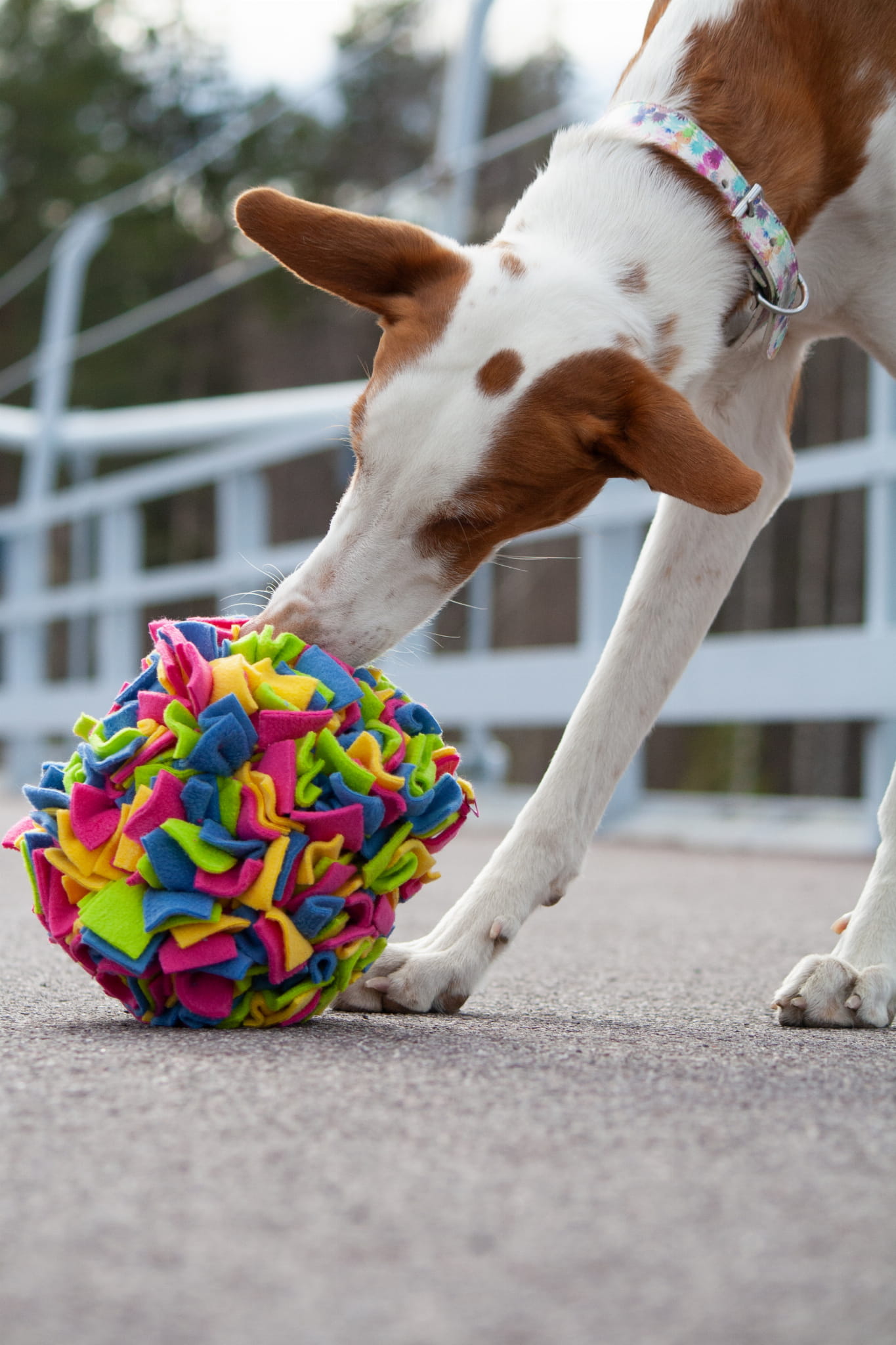 Ook spelen is onderdeel van de opvoeding daarom adviseren wij dat spelen met de snuffing ball altijd onder supervisie van de baas plaats vindt.
