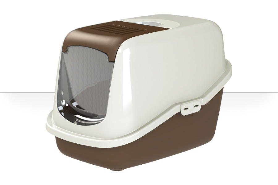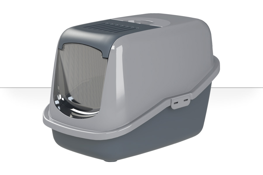 Wanneer de kat plast, verdwijnt 90% daarvan via het rooster in de onderbak.