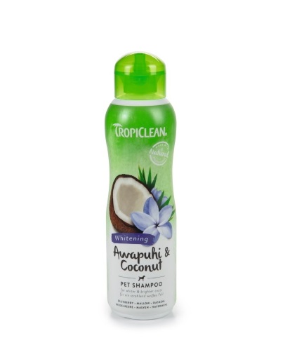 Tropiclean Awapuhi Coconut shampoo is een shampoo voor honden en katten van alle leeftijden, met 100 procent natuurlijke ingrediënten, bestaande uit 80 procent biologische en 20 procent natuurlijke ingrediënten. De shampoo is vrij van wasmiddel en sulfaat en is dusdanig geformuleerd dat het de werking van eventuele aangebrachte vlooien en teken bestrijdingsmiddelen niet in de weg zal staan. De toevoeging van kokosnoot heeft als voordeel dat de vacht na de wasbeurt erg zacht zal aanvoelen en het tevens een hydraterende werking heeft voor de huid, dit omdat kokos essentiële eiwitten bevat. Een mix van kokos samen met papaya, mango,awapuhi, of andere tropische extracten, zorgen voor een luxe schuim dat reinigt en voedt. Geinspireerd door de tropen, maakt dat uw hond, of kat na de wasbeurt weer heerlijk fris en schoon is en niet geheel onbelangrijk, ook weer lekker ruikt.