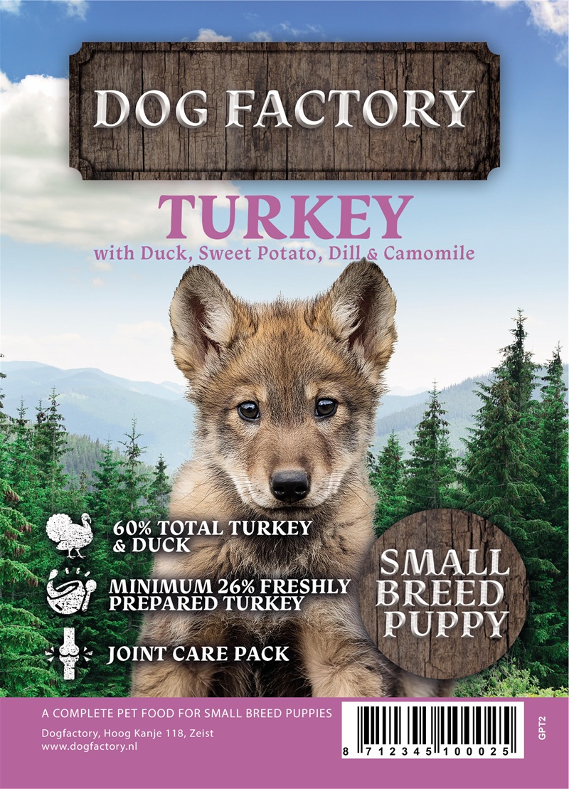 Premium Puppyvoeding met Kalkoen, Eend, Zoete Aardappel, Dille & Kamille