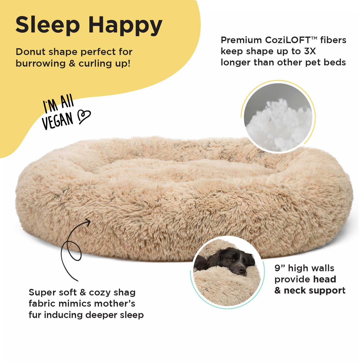 Kalmerend premium Donut bed, voorzien van AirLOFT vezels die de vorm van de mand tot maar liefst 3x langer vasthouden dan andere materialen. De lange AirLOFT vezels zorgen voor superzacht, fluffy  materiaal, meer ondersteuning en een groter comfort.