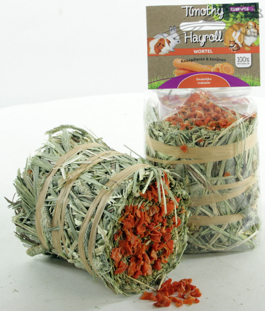 Deze rol bestaat voornamelijk uit hooi en een topping van kruiden of fruit.