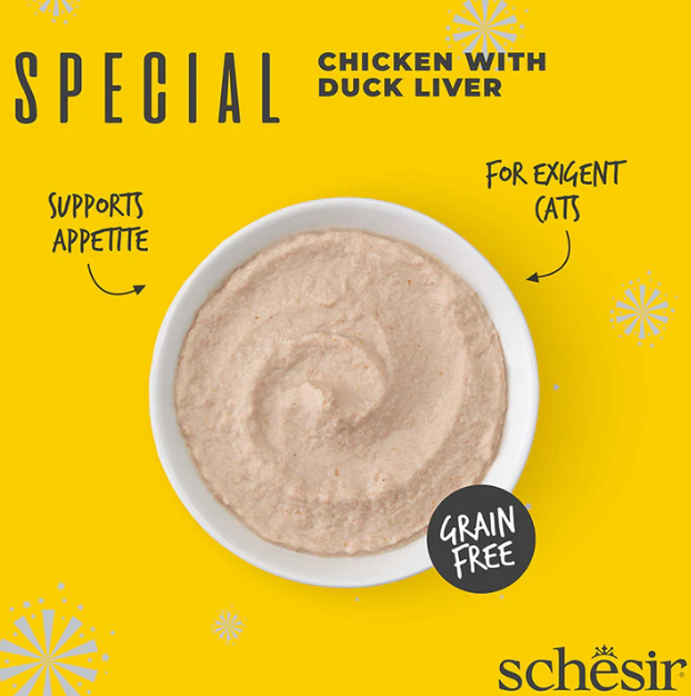 Niet alle katten zijn hetzelfde. Elk kan speciale voedings- of smaakvereisten hebben. Daarom biedt Schesir Special Mousse complete, uitgebalanceerde recepten die zijn samengesteld om aan specifieke behoeften te voldoen. Met eiwit van echt vlees gecombineerd met andere waardevolle ingrediënten, vermengd tot een zachte, fluweelzachte mousse. Zonder granen.