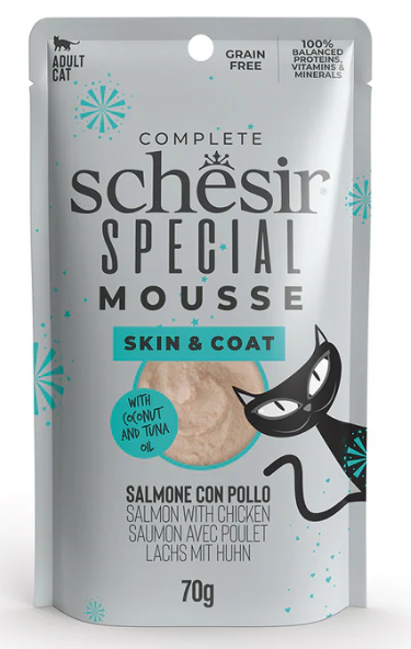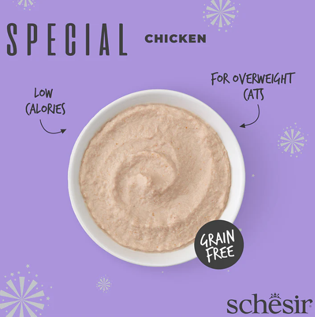 Niet alle katten zijn hetzelfde. Elk kan speciale voedings- of smaakvereisten hebben. Daarom biedt Schesir Special Mousse complete, uitgebalanceerde recepten die zijn samengesteld om aan specifieke behoeften te voldoen. Met eiwit van echt vlees gecombineerd met andere waardevolle ingrediënten, vermengd tot een zachte, fluweelzachte mousse. Zonder granen.