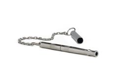 Een metalen hondenfluit, deze heeft een hoge toon.