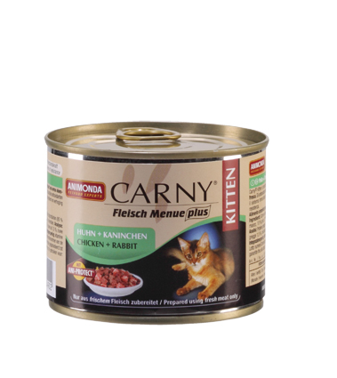 Een lekkere vleesmaaltijd voor uw opgroeiende kitten met de smaken van kip en konijn.