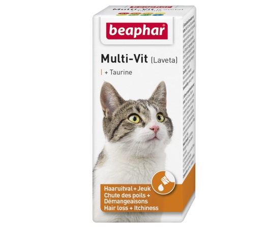 Multi-Vit met Taurine bevat vitaminen die helpen bij het gezond houden van huid en vacht en te gebruiken zijn bij een gevoelige huid. Taurine is toegevoegd, omdat dit voor katten belangrijk is voor het functioneren van hart en ogen. Druppels door het voer mengen.