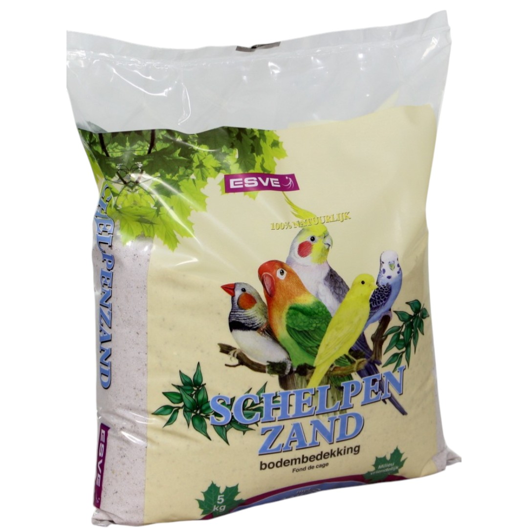 Schelpenzand bevordert de hygiëne in de vogelkooi. De schelpjes hebben een dubbele functie; enerzijds als molensteen voor het vermalen en verteren van granen, en anderzijds als calciumbron en bron van vele andere mineralen voor sterke botten en de opbouw van veren.