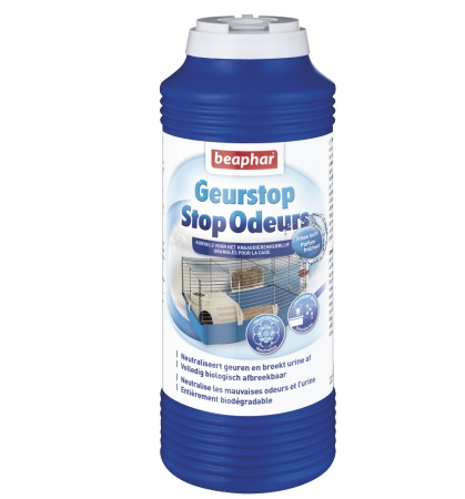 Beaphar Geurstop zorgt voor een blijvend fris knaagdierverblijf. Geurstop neemt urine direct op. De unieke structuur van de korrel kapselt de urine in, waardoor de geur niet kan ontsnappen. Vervolgens worden urine en geur door natuurlijke bacteriën afgebroken. Door dit proces blijft de kooi van uw knaagdier hygiënisch schoon. Een licht parfum zorgt voor een aangename frisse geur voor zowel dier als mens. Geurstop is biologisch afbreekbaar en volledig veilig voor knaagdieren.