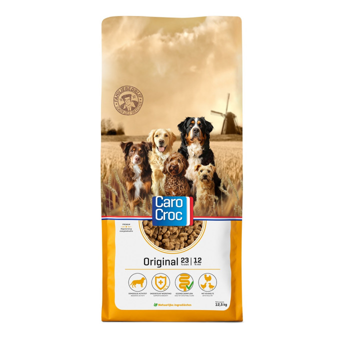 CaroCroc Original is een complete voeding voor volwassen honden van middelgrote rassen. CaroCroc Original bevat 23% eiwit en 12% vet. Daarnaast bevat