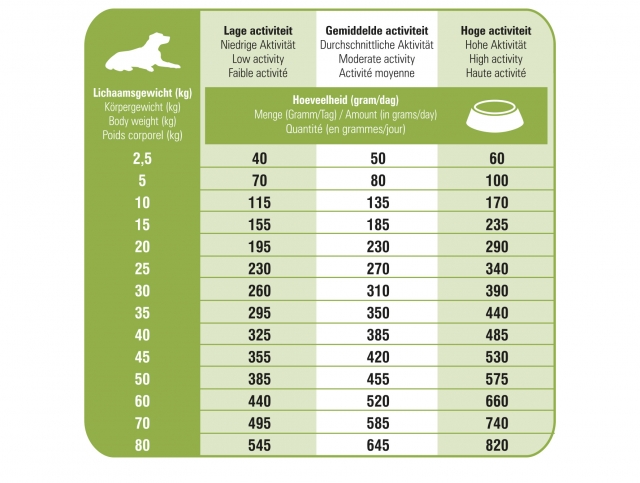 Deze voeding is verkrijgbaar in verpakkingen van 3 kg en 12 kg.