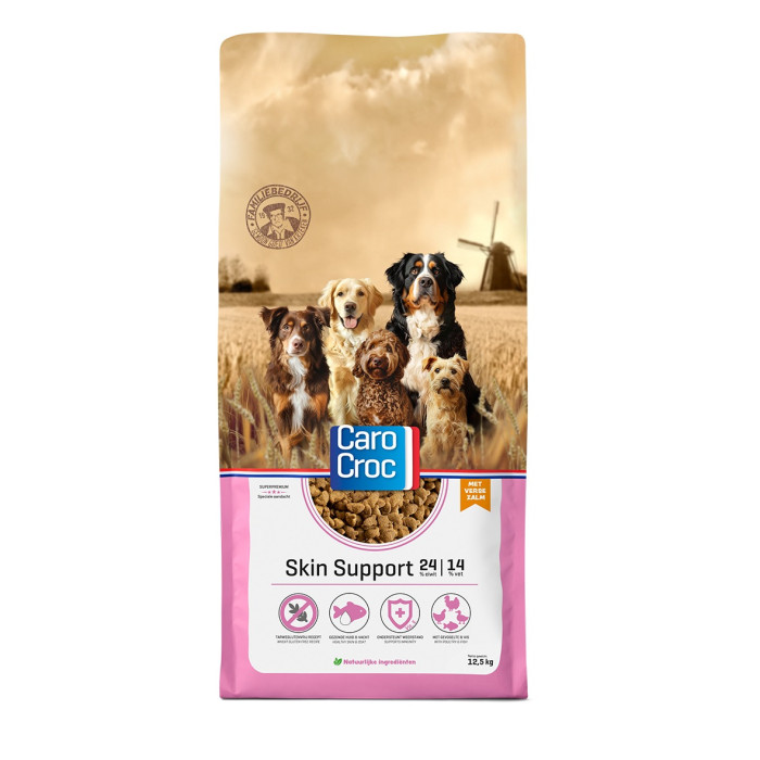 Vraagt u lichte lichamelijk inspanning van uw hond, zoals spelen of wandelen, dan is CaroCroc Support geschikt. Dit geldt ook voor tentoonstellingshonden of honden waarvan tijdelijk geen prestaties worden verwacht, zoals teven buiten de dracht- en lactatieperiode en dekreuen in rust. CaroCroc Support is een volledig diervoeder voor volwassen honden van alle rassen ter voorkoming van voedselallergieën.