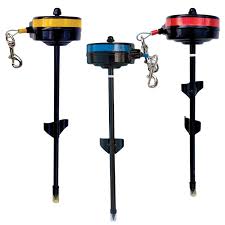 Deze grondpin is voorzien van een oprolsysteem met 4.5 meter staalkabel.