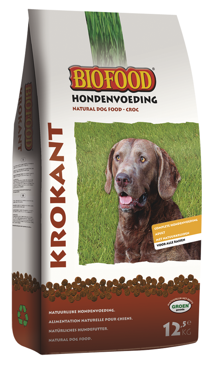 BIOFOOD Krokant is een volledige licht verteerbare, natuurlijke en zeer smaakvolle hondenvoeding voor alle rassen. BIOFOOD krokant bevat de optimale dagelijkse hoeveelheid eiwitten, vetten, koolhydraten, vitaminen en mineralen die bijdragen tot een goede gezondheid van uw hond. De bronnen van eiwitten, koolhydraten en vetten zijn van hoge kwaliteit. Deze zorgen voor een betere vertering, ontlasting en een goede conditie van uw hond. Het hoge vleesaandeel zorgt voor een perfecte opname en prima acceptatie. Voor volwassen honden met een normale energiebehoefte.