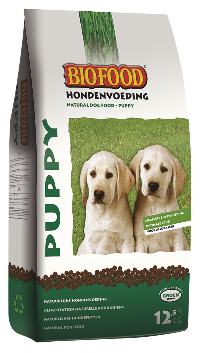 De puppy levensfase is erg belangrijk en bepalend voor een krachtig, vitaal en gezond leven wanneer uw hond volwassen wordt. BIOFOOD Puppy is een volledige licht verteerbare, natuurlijke en smaakvolle voeding voor honden in de eerste levensfase. U kunt vanaf 3 weken tot maximaal 12 maanden, afhankelijk van het ras, de puppybrok voeren. BIOFOOD puppy voeding heeft alles wat een jonge, opgroeiende hond van nature nodig heeft. Een uitgekiende en optimale samenstelling met een hoog eiwitgehalte en gezonde vitaminen en mineralen zorgen bij een energieke en speelse pup voor gezonde ontwikkeling van botten, tanden en kiezen, spieren en vertering.
