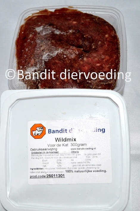 Voedingsadvies: De benodigde hoeveelheid Bandit diepvries voeding per dag komt neer op +/- 80-100gram voor de volwassen kat van 4-5Kg.