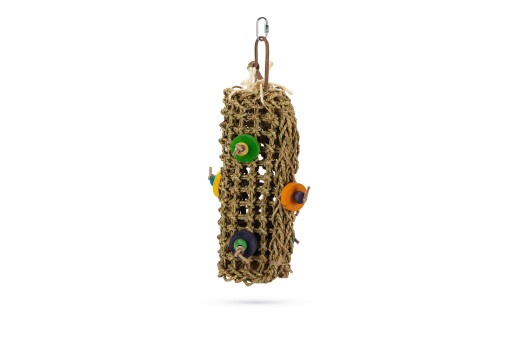 Op zoek naar een leuk hangspeeltje voor in de vogelkooi? Dan ben je misschien wel op zoek naar het Beeztees Kiedo vogelspeeltje. Dit speeltje, gemaakt van zeegras, is gevuld met kokosvezel en is aan de buitenkant afgewerkt met leuke houten blokjes en kralen. Heel leuk voor jouw vogel om mee te spelen. Eenvoudig op te hangen in de vogelkooi door middel van het haakje.