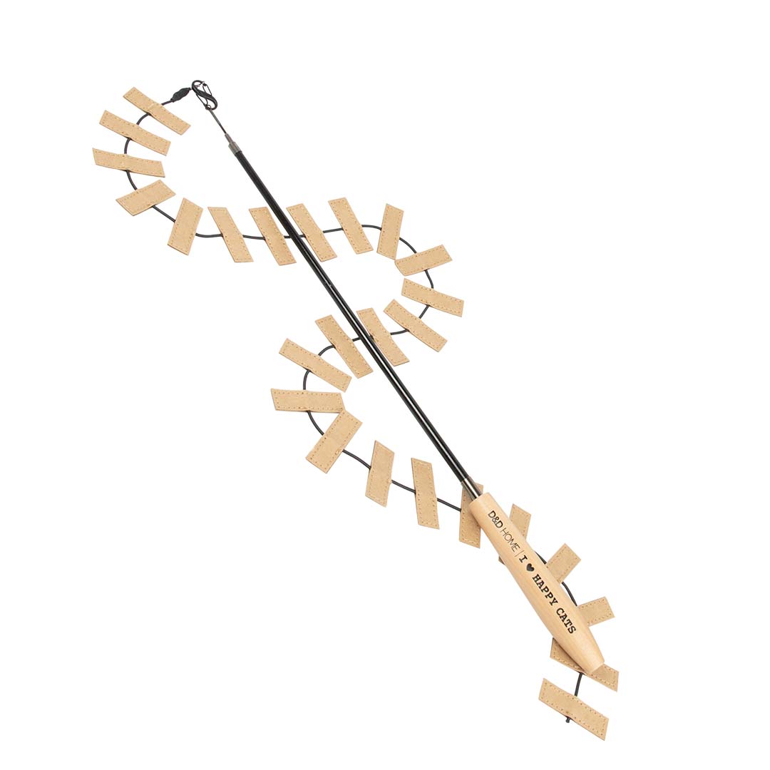 De COOPER van D&D Home | I Love Happy Cats is ontworpen in samenwerking met kattengedragstherapeute Anneleen Bru en is het ultieme jachtspeeltje. De 97cm lange telescopische en flexibele hengel is voorzien van een 90 cm lange unieke hanger van kartonnen strookjes Wanneer je COOPER langzaam over de vloer sleept, maakt de hanger slangachtige bewegingen – perfect om het jachtinstinct van je kat te prikkelen! COOPER wordt gebruikt voor de eerste van drie jachtfases: een prooi achterna jagen! De tweede fase is het ‘doden’ van de prooi, de derde fase is het opeten ervan. Wat is het geheim van succes? Je kat mag de prooi liefst niet vangen, zodat je kat écht kan jagen. Je kan de prooi in de lucht of over de vloer bewegen. Het spel helpt je kat fysiek uit te dagen en stress te verminderen. Je kunt ook ander speeltjes aan de COOPER hengel bevestigen. Berg de COOPER met prooi na elk spel goed weg.
