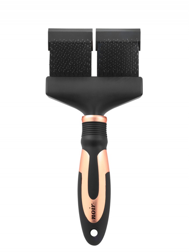 Dubbel duo borstel met flexibele kop gemaakt van roestvrijstalen pinnen.
