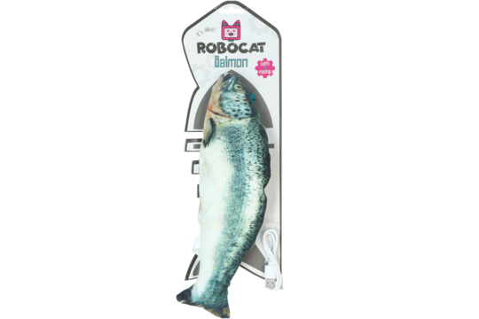 De eerste zalm die echt tot leven komt, en dat ook nog eens als een speeltje voor de kat!